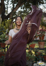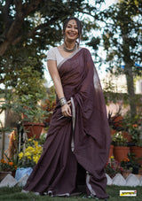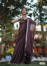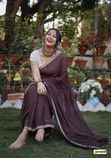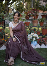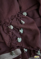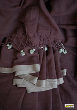 Buttery soft, handloom pure semi-translucent cotton saree, adorned with cute braided tassles.