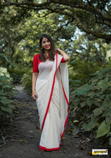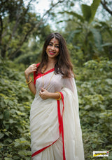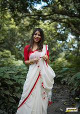 Buttery soft, handloom pure semi-translucent cotton saree, adorned with cute braided tassles.