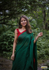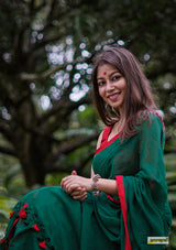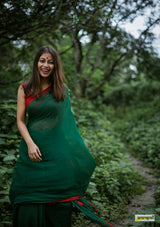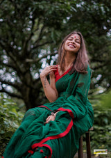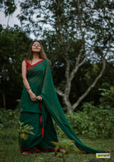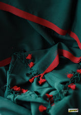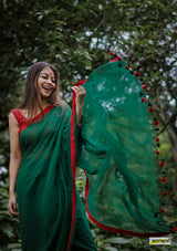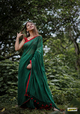 Buttery soft, handloom pure semi-translucent cotton saree, adorned with cute braided tassles.