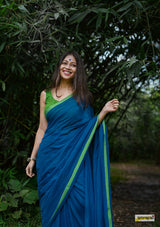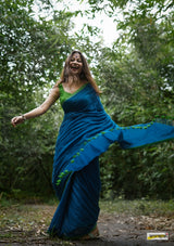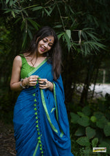 Buttery soft, handloom pure semi-translucent cotton saree, adorned with cute braided tassles.