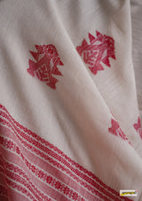 Handwoven Pure Mercerised Cotton with Manipuri Pattern Threadwork - White