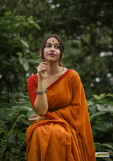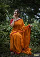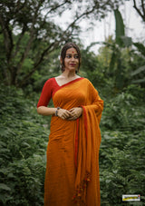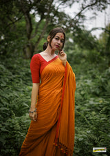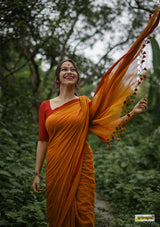 Buttery soft, handloom pure semi-translucent cotton saree, adorned with cute braided tassles.