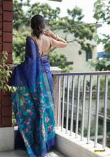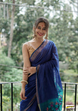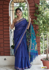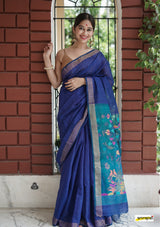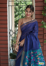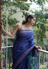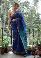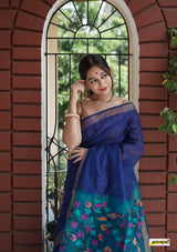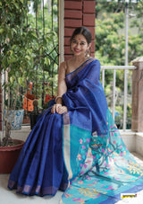 Handloom matka resham resham saree, adorned with jamdani buti on border.