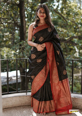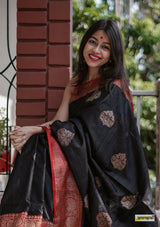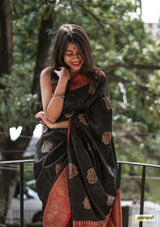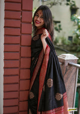 Handloom Black Pure Tussar Benarasi