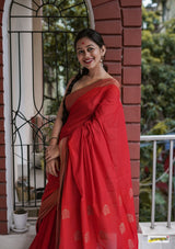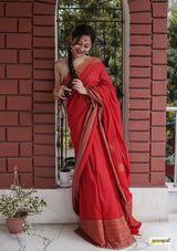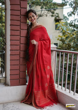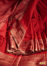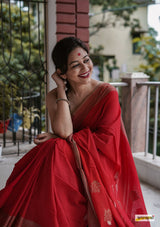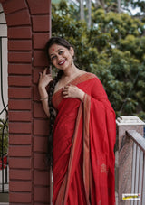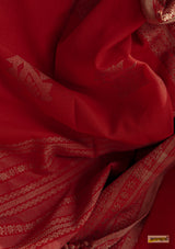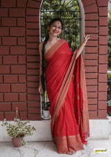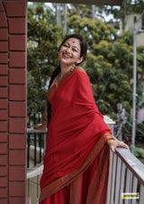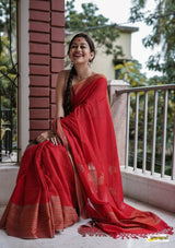 Handwoven Pure Mercerised Cotton with Manipuri Pattern Threadwork - Red