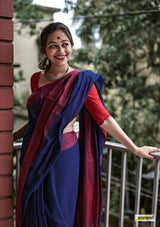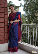Handwoven pure mercerised cotton saree, adorned with Manipuri patterned threadwork.
