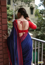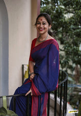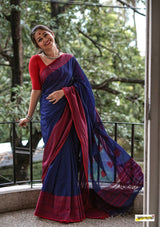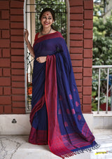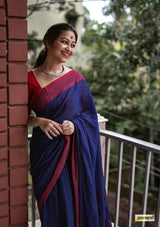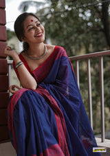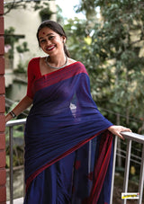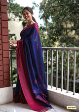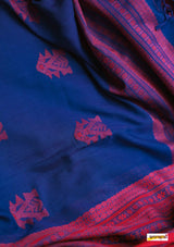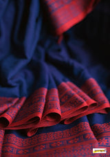Handwoven Pure Mercerised Cotton with Manipuri Pattern Threadwork - Dark Blue