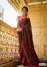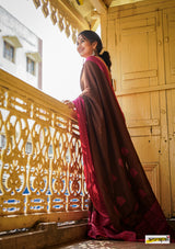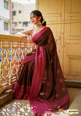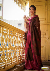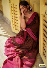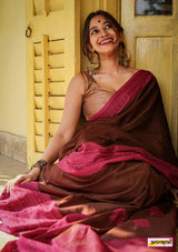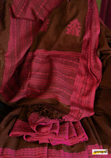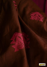 Handwoven Pure Mercerised Cotton with Manipuri Pattern Threadwork - Dark Brown
