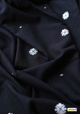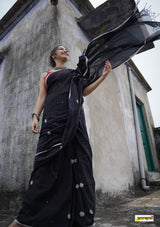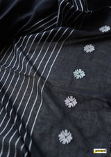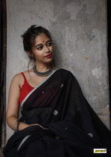 Buttery soft, handloom woven, semi-translucent cotton saree, adorned with 'jamdani inspired' jacquard butas and braided tassles.
