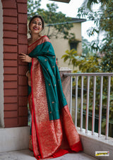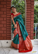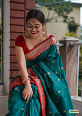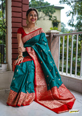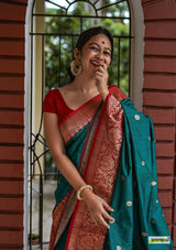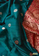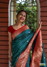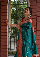 Handwoven Teal Blue Pure Tussar Benarasi - Limited Edition